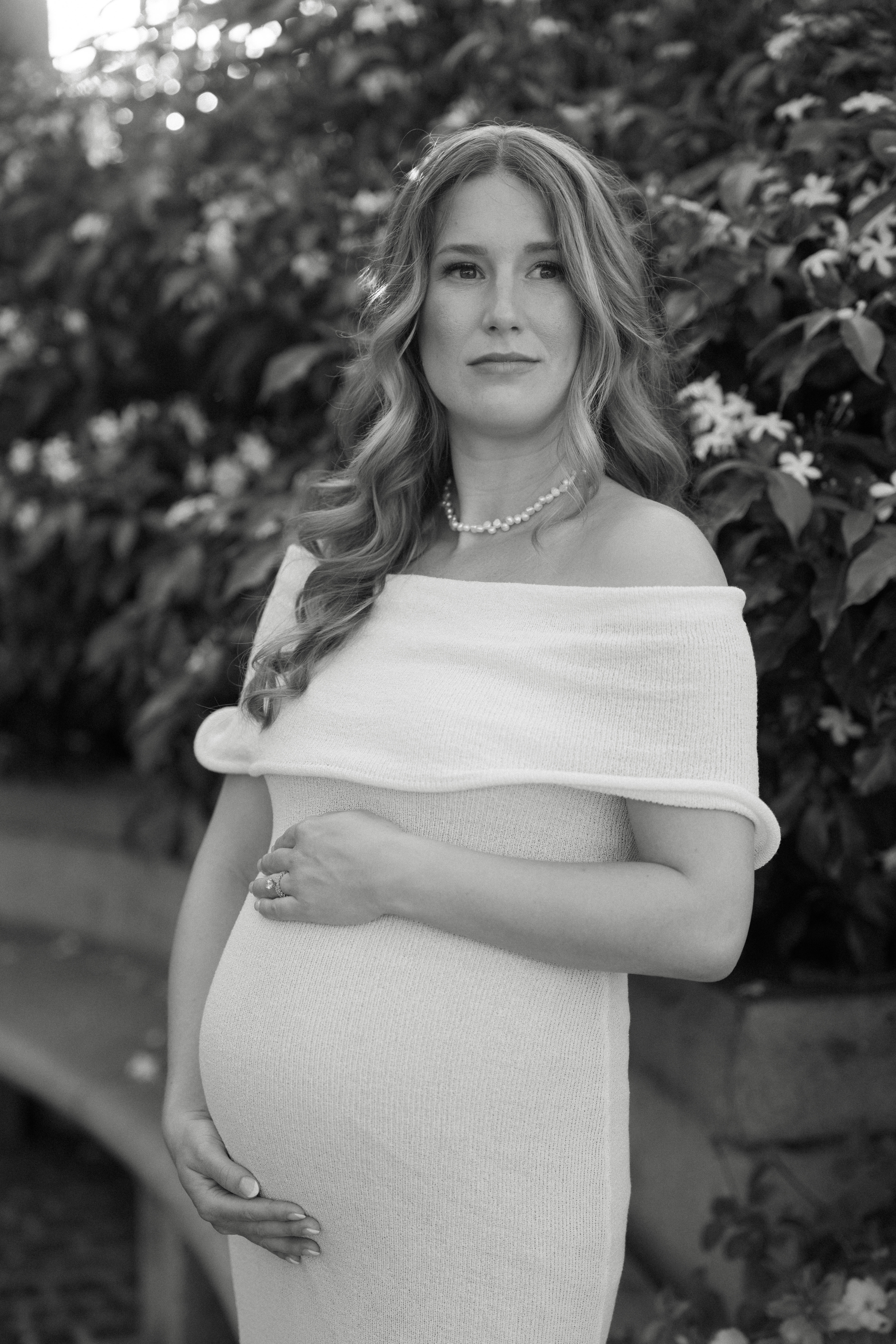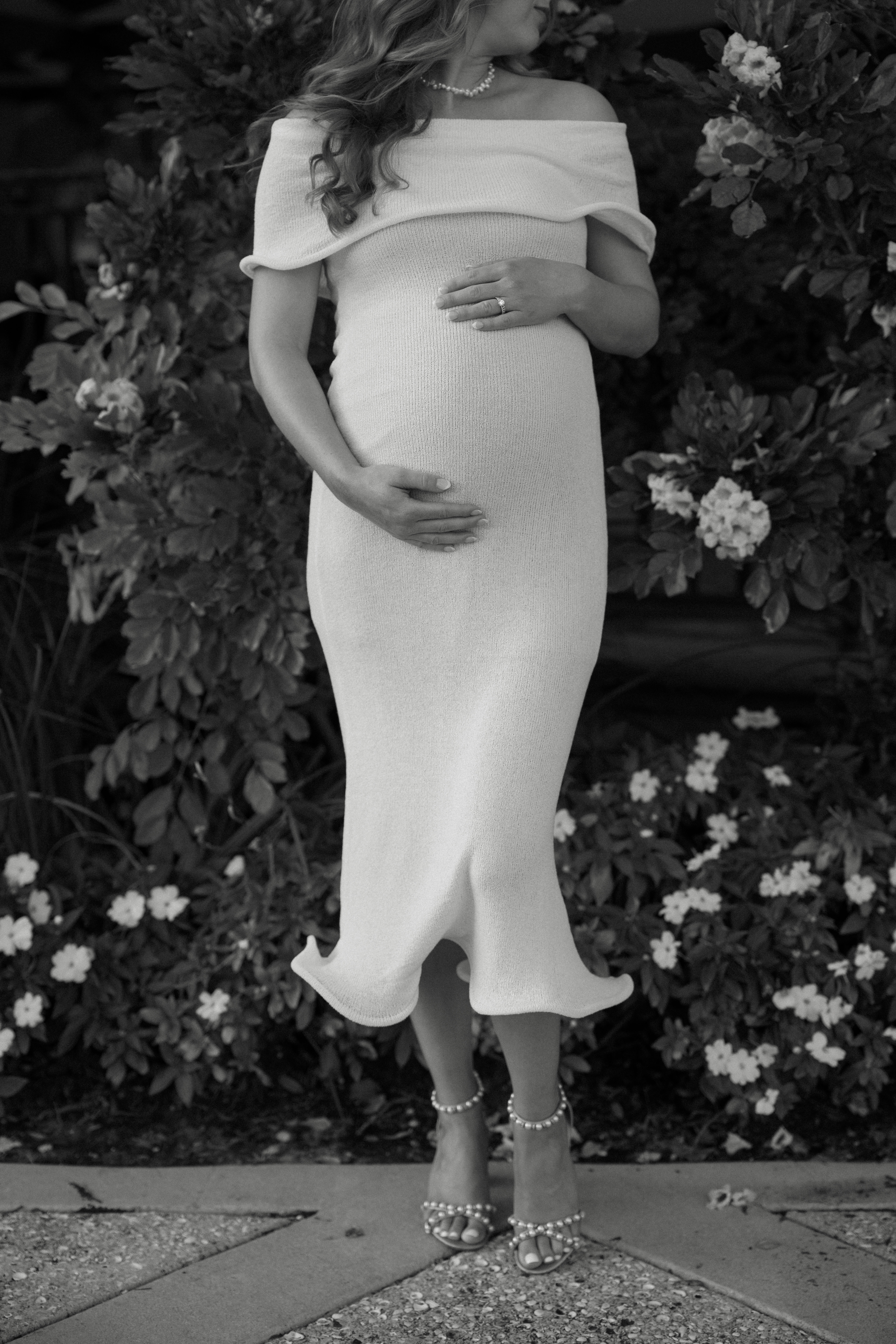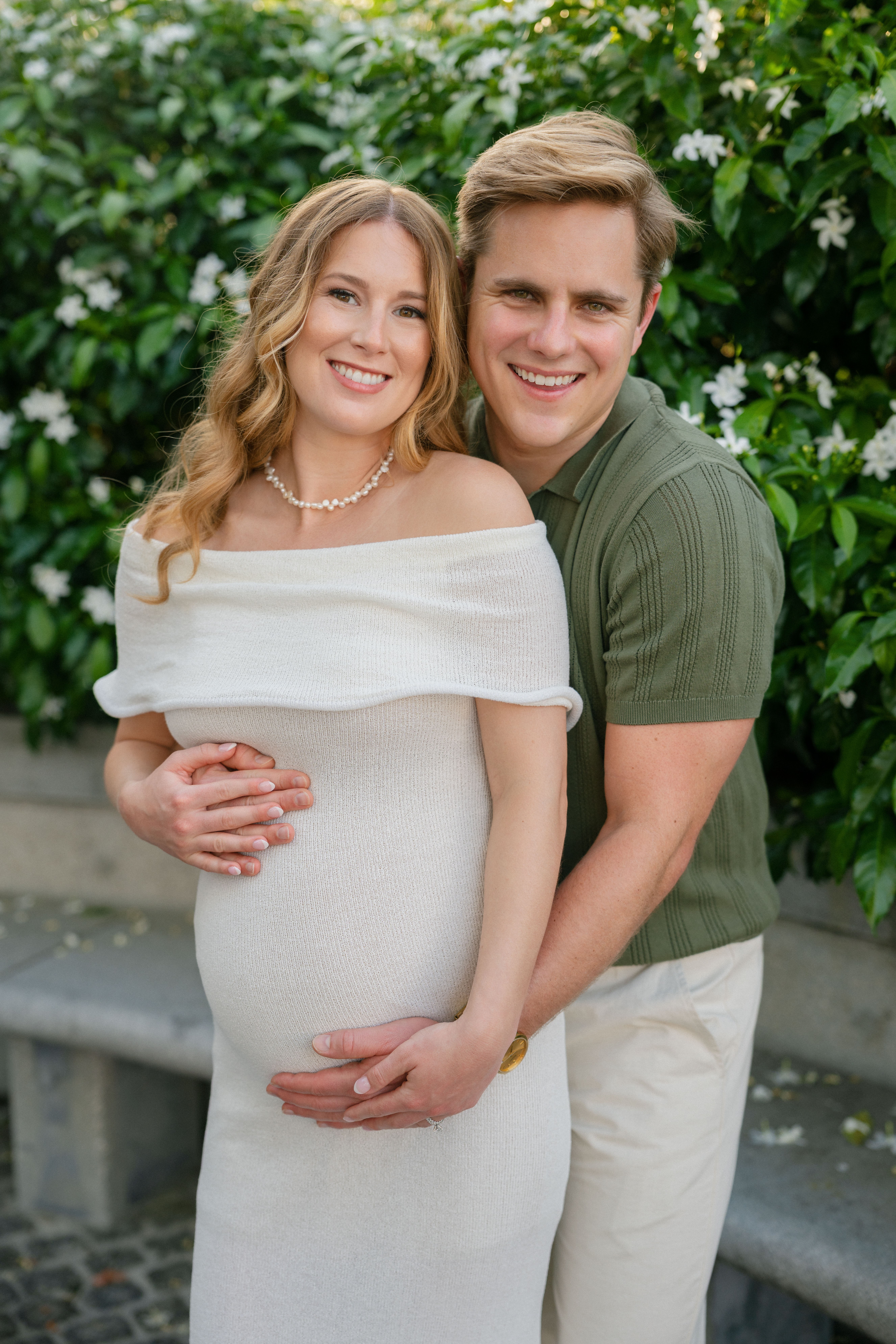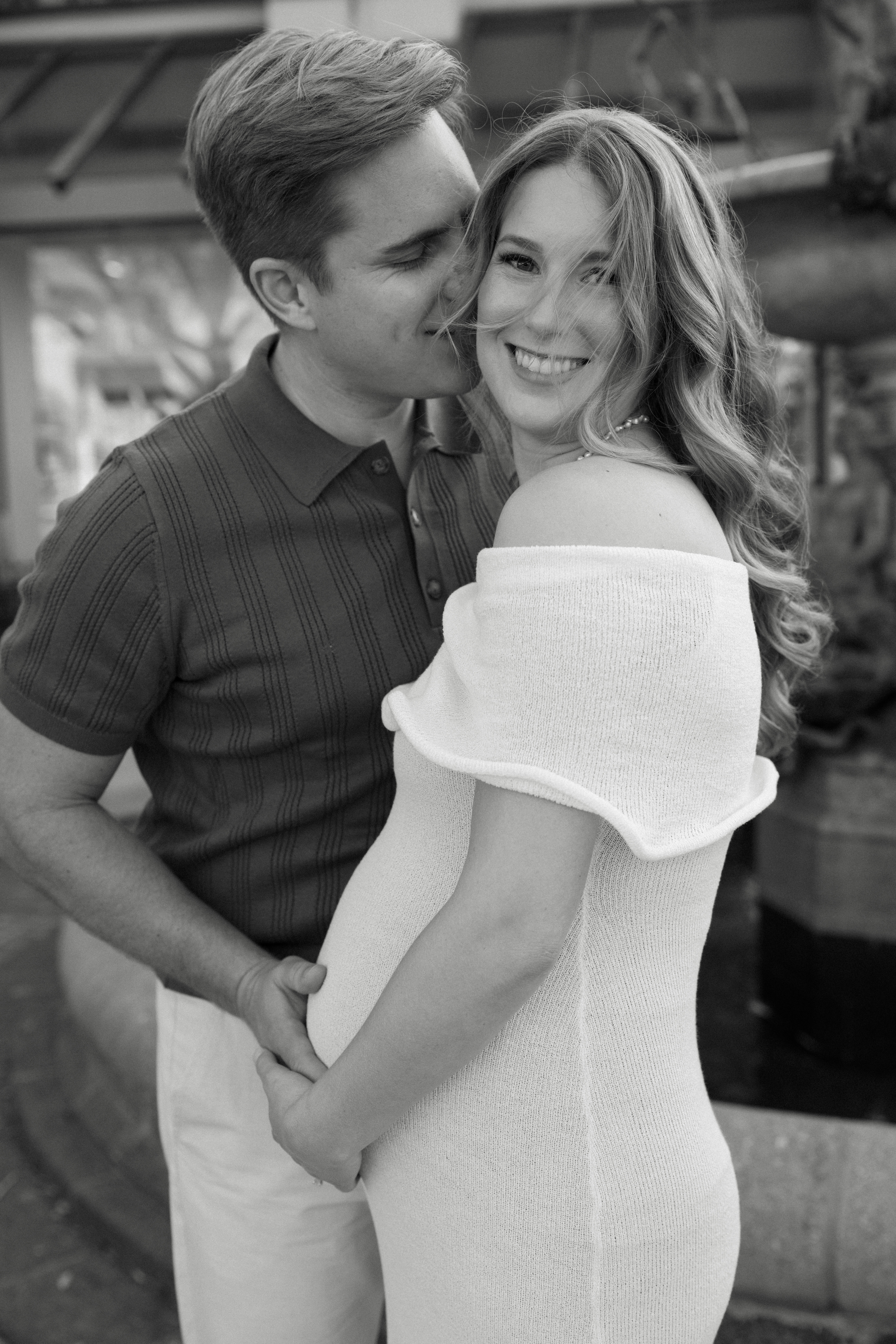 Hunter Ryan Photo captured a beautiful Florida maternity session as their couple prepared to welcome a little one into the world. Their session started on dry land as they strolled the downtown streets, hand in hand. The mother-to-be chose a fitted white off-the-shoulder dress, while her partner chose a dark green polo and light khaki pants. These photos helped pause time, for just a moment, capturing portraits while it’s still just the two of them.