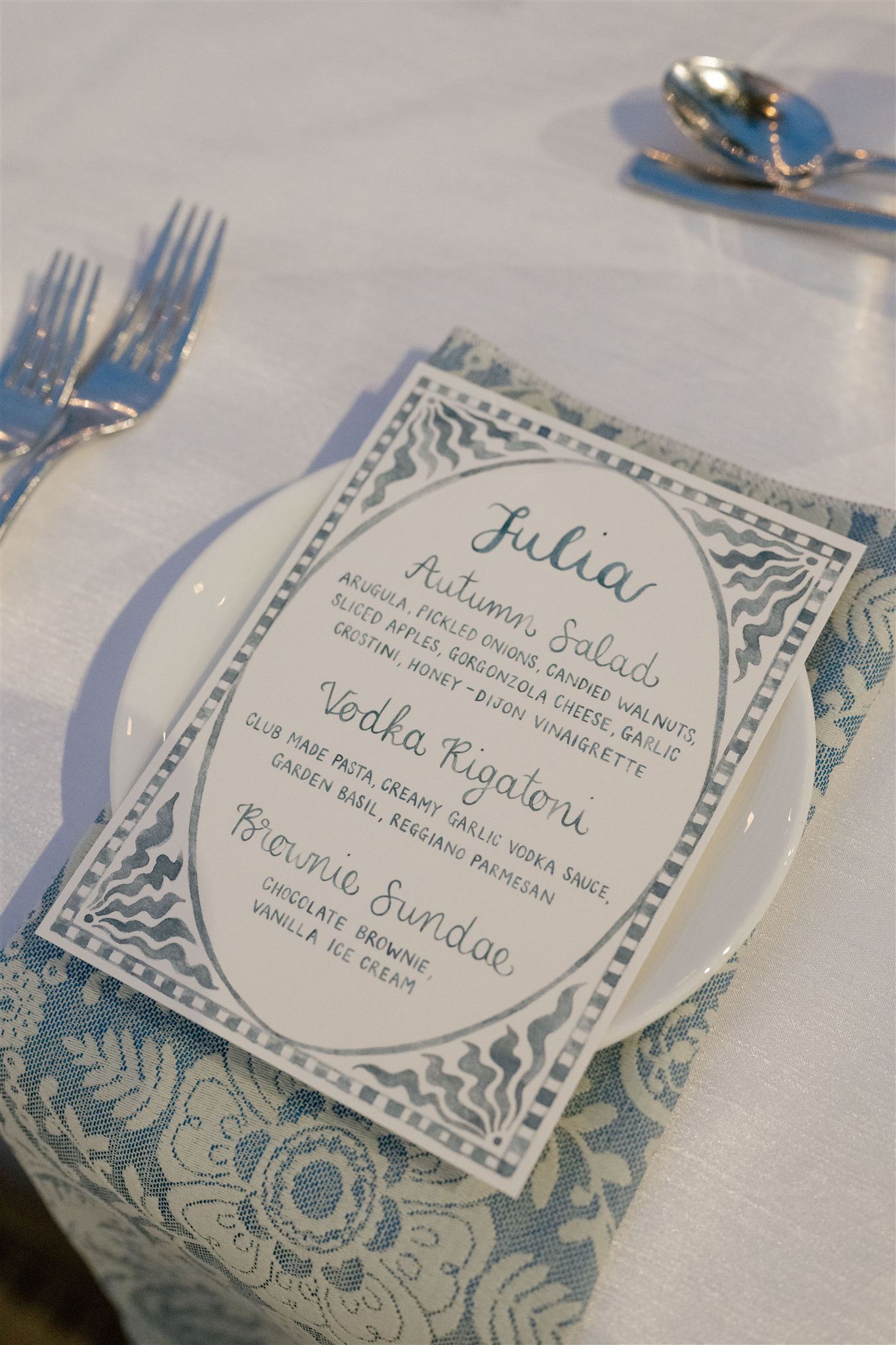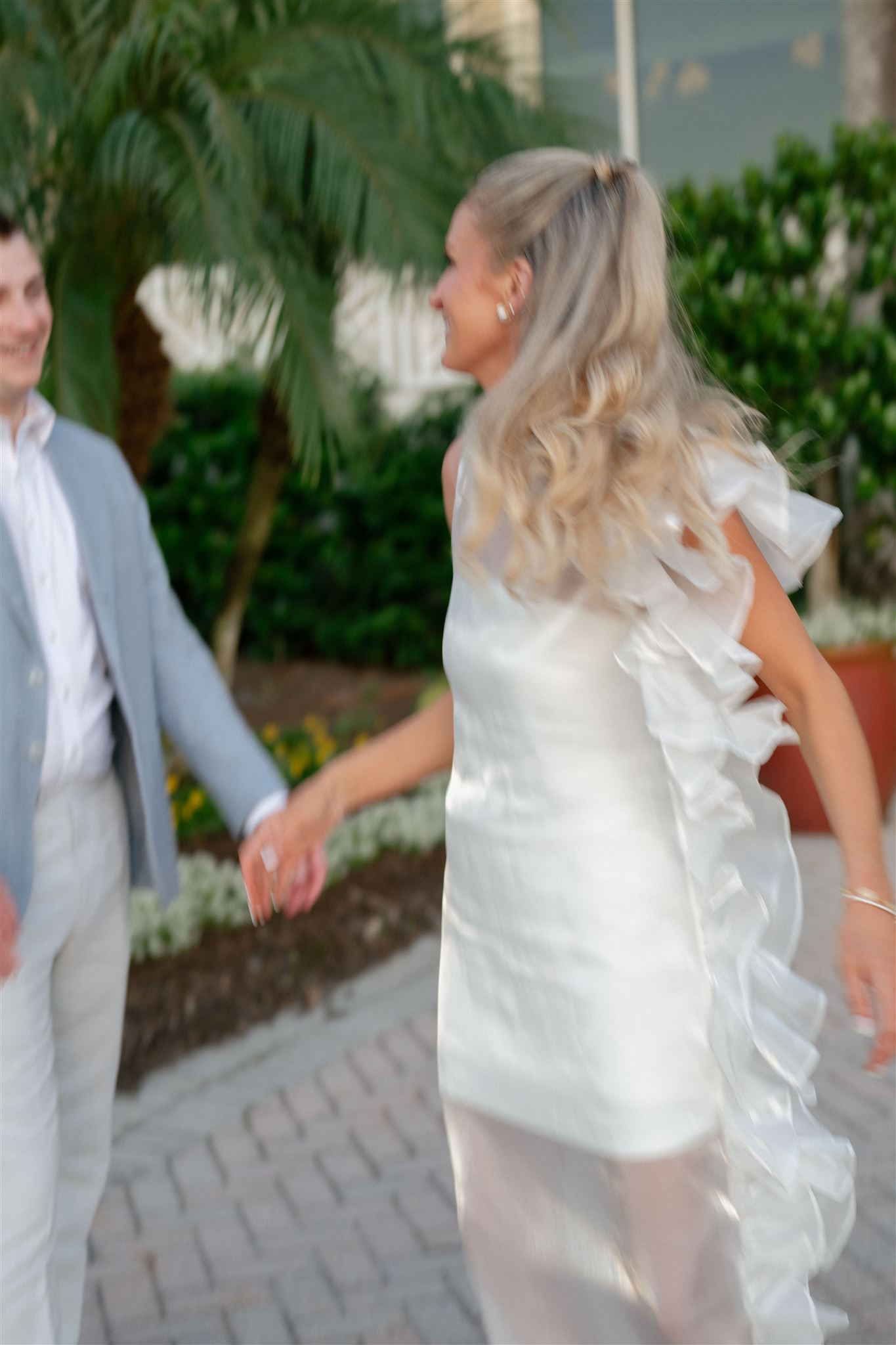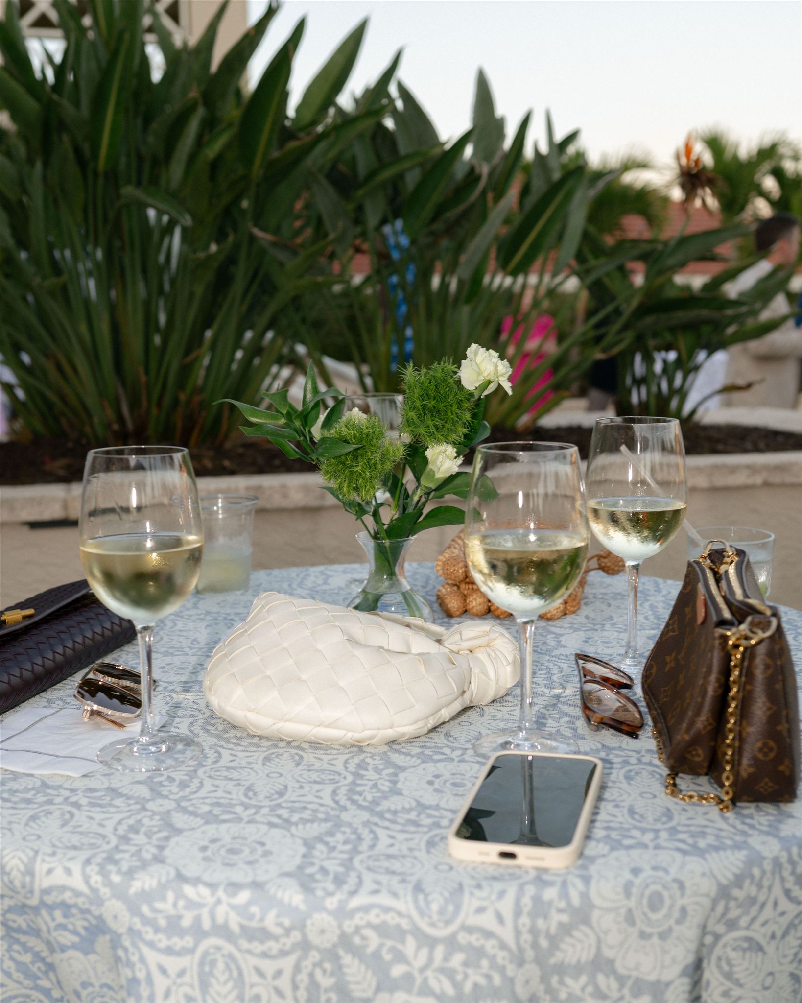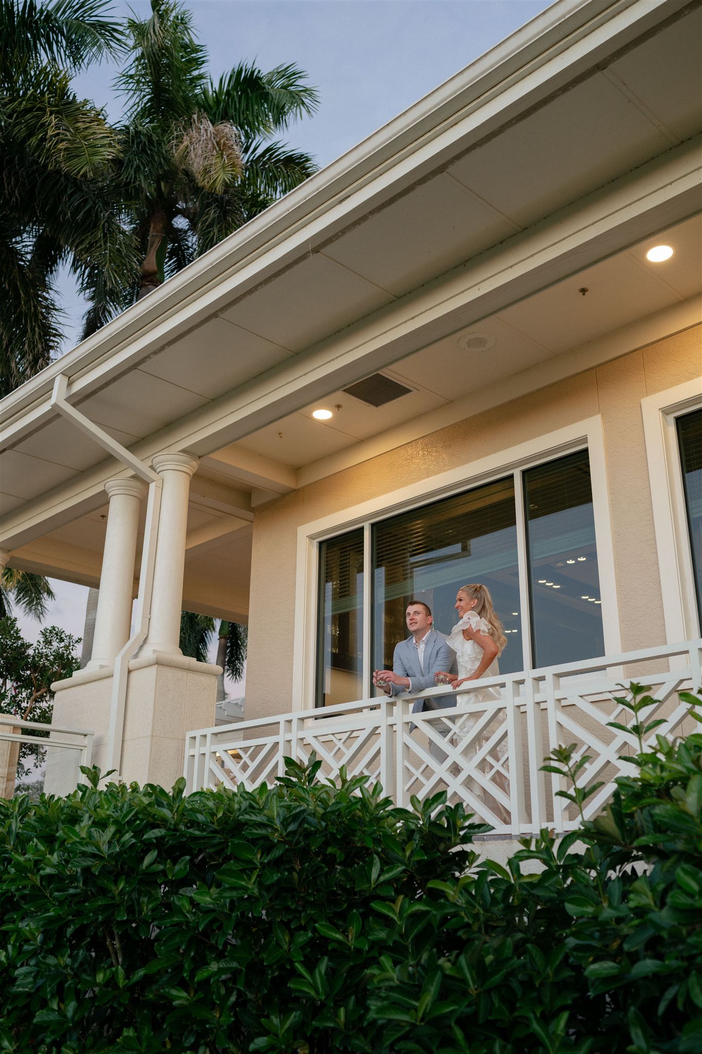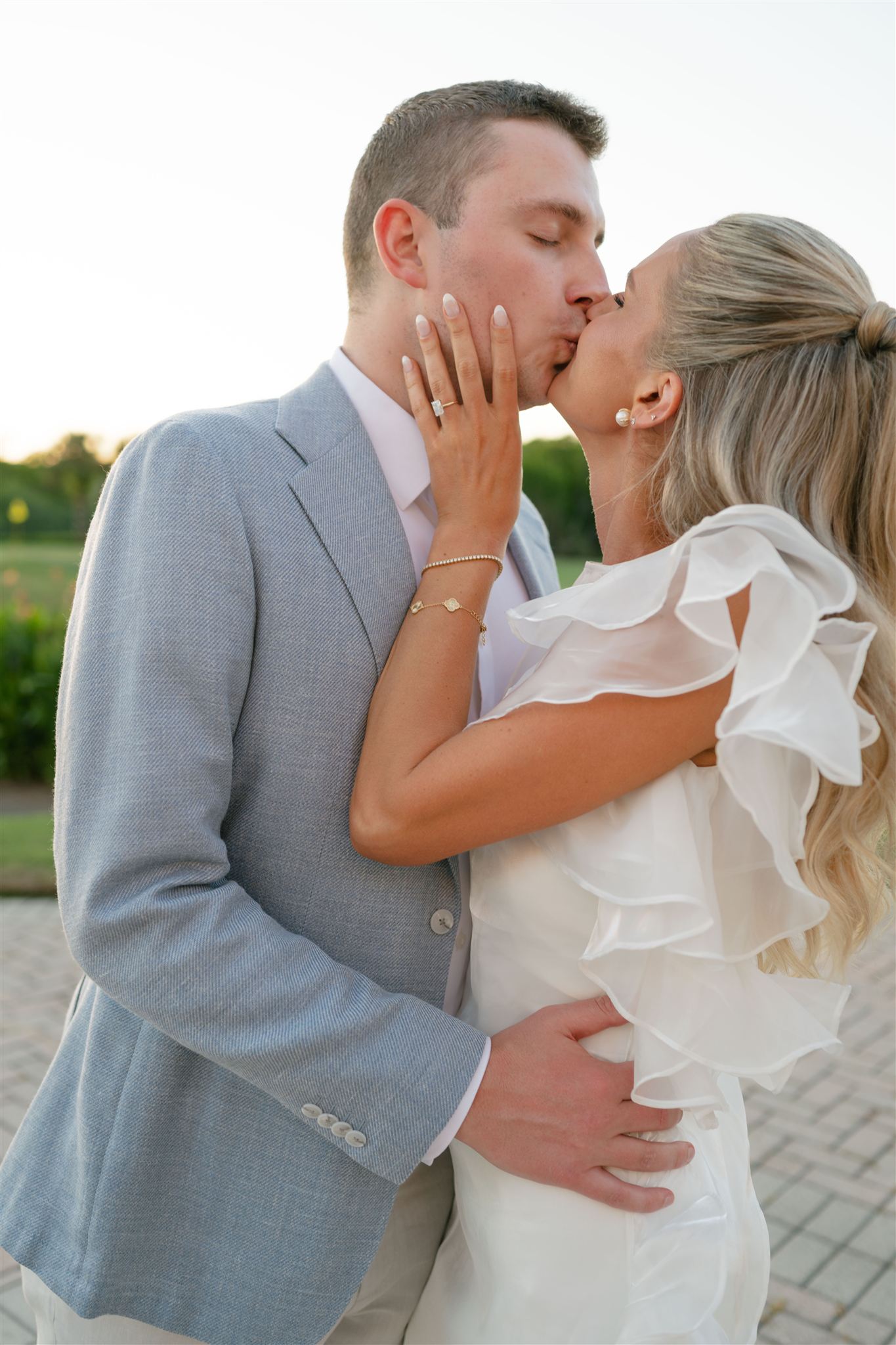 Jet Set Wed planned a beautiful welcome party for this Naples, Florida wedding weekend. Hunter Ryan Photo flawlessly captured the pre-wedding celebrations, preserving each memory. The party was held outside at Collier’s Reserve Country Club on their stone patio. Guests were welcomed with a custom sign from The Fox in the Attic as they gathered beneath the string lights. One long table was adorned with baby blue napkins, colorful florals, and crisp white linens. Guests wowed with colorful fashion choices and chic bags while the couple opted for a bridal look with a white frilled dress and power blue suit jacket. They snuck off for golden hour portraits around the property as guests mingled while the sun began to set. Loved ones enjoyed a plated meal beneath the stars as they helped usher in the excitement for Julia & Jack’s wedding weekend. This was the perfect start to their marriage and such a joy to capture!