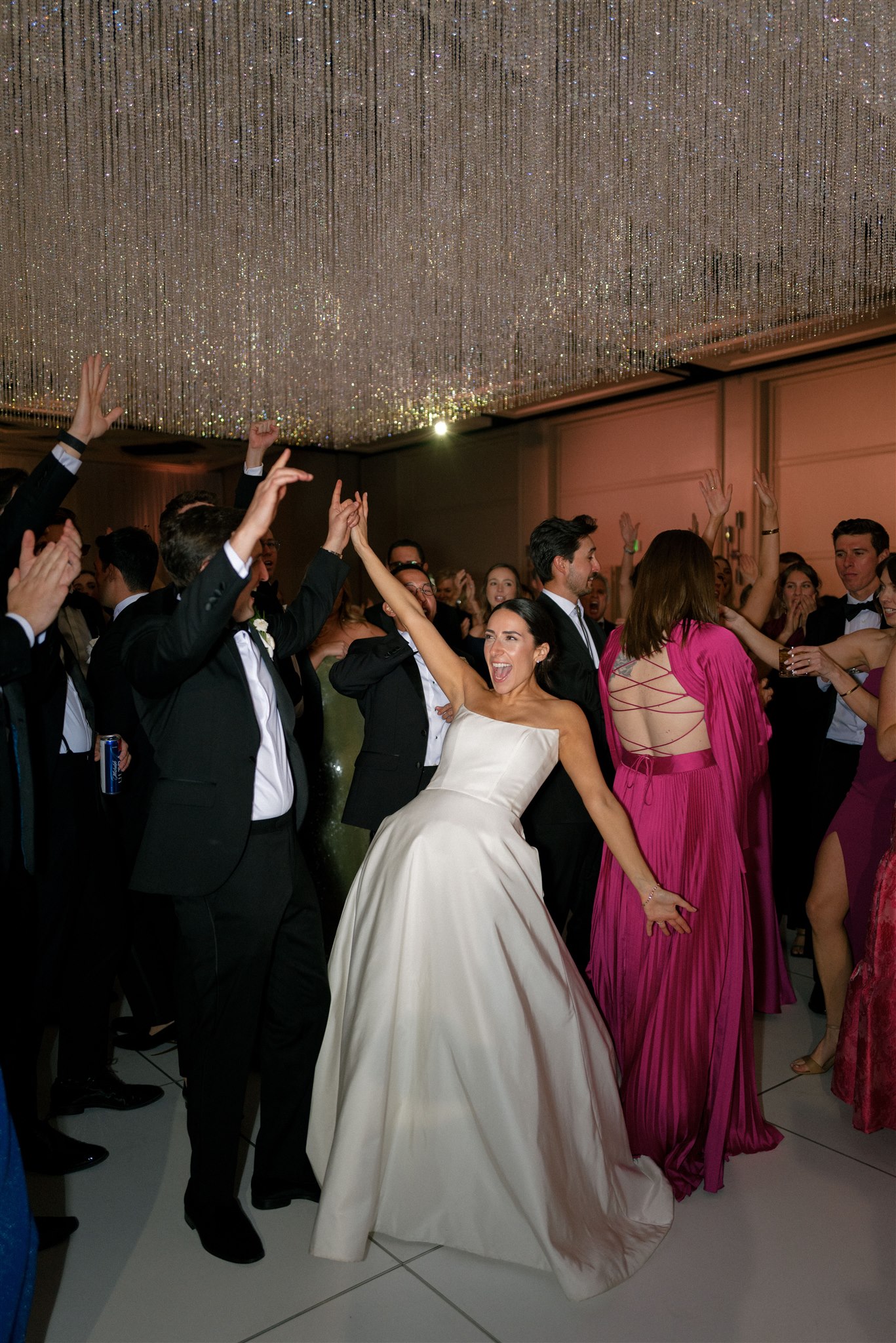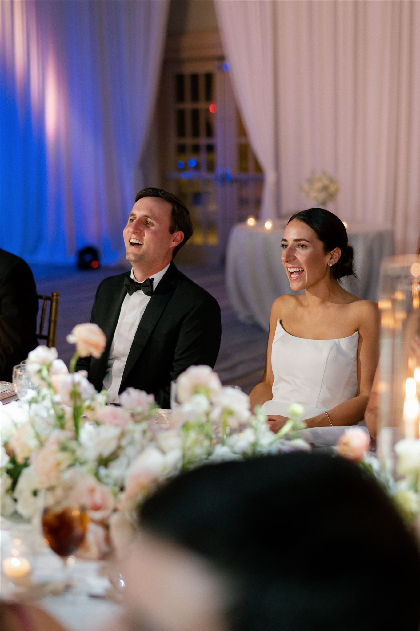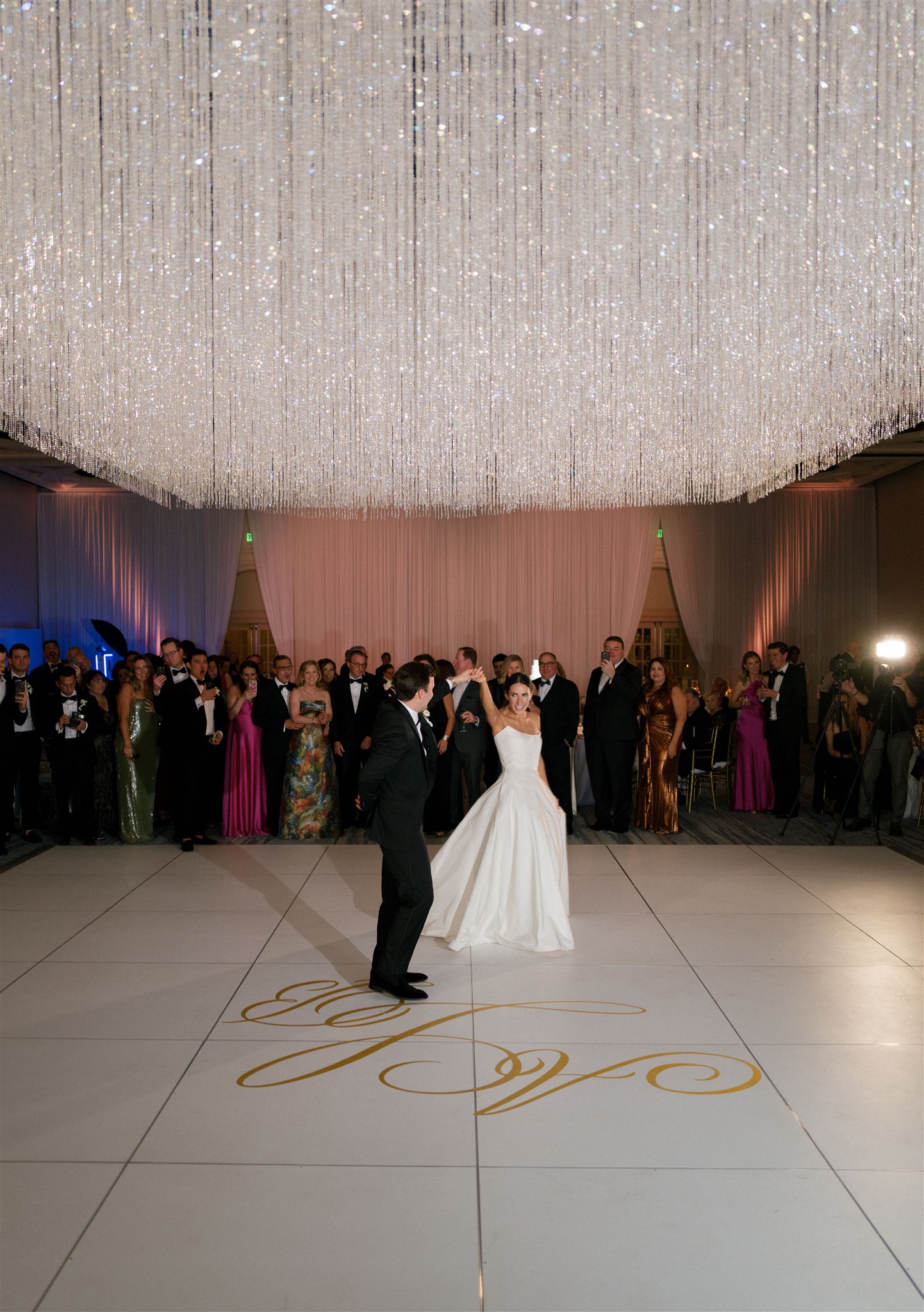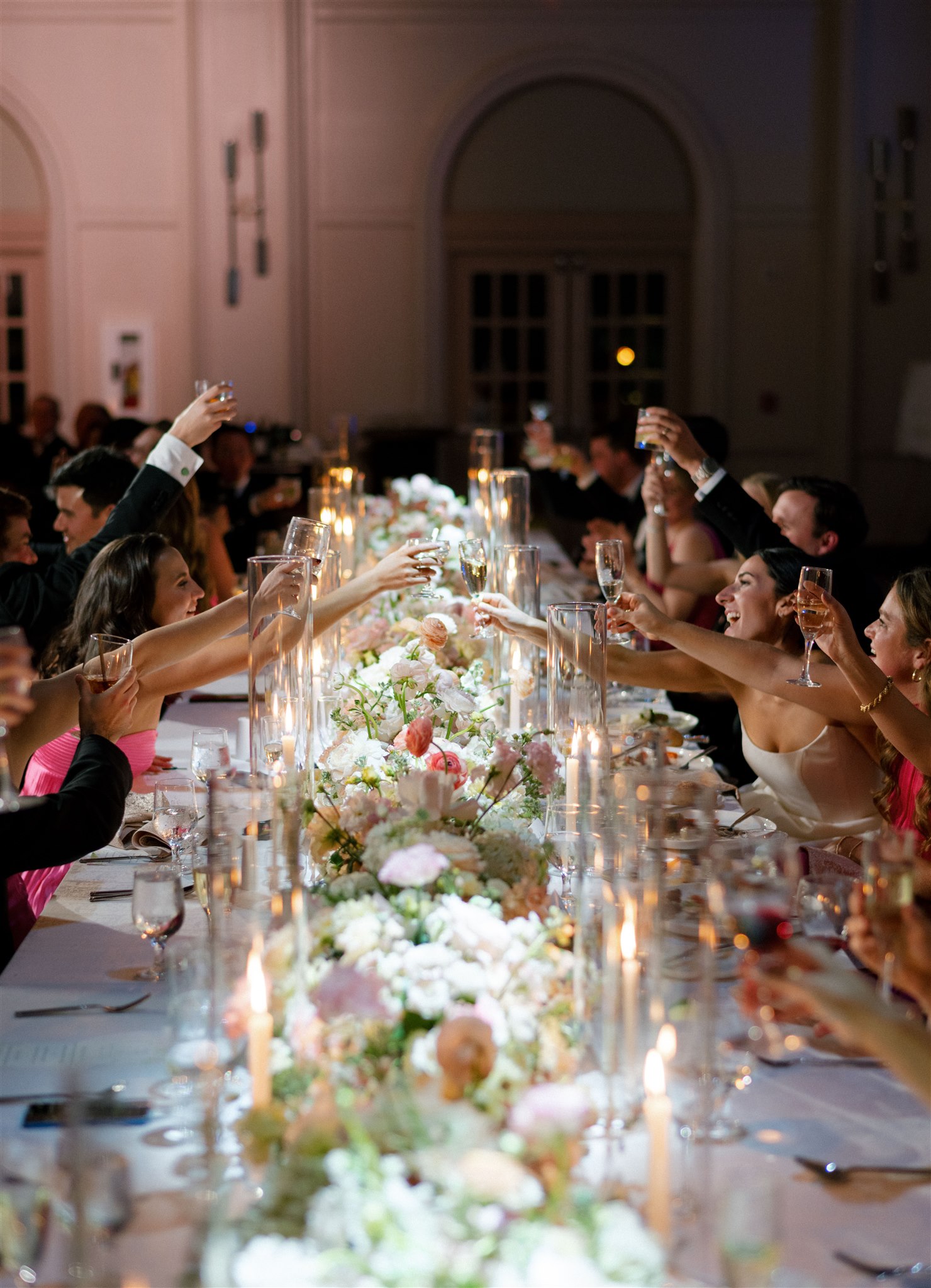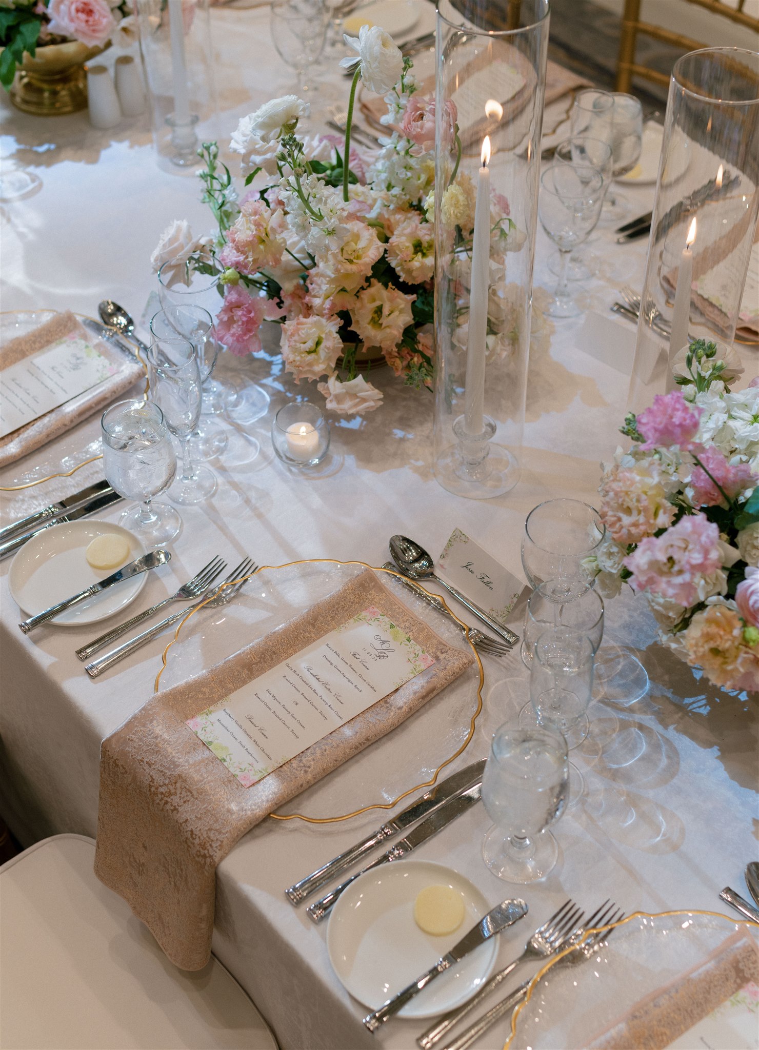 The reception featured elegant white tablescapes with pastel florals, gold-accented place settings, and soft candlelight. Beneath a glittering chandelier, Alyssa and Brad shared their first dance to Libido Band before cutting into their four-tier floral-adorned cake. Later, Alyssa changed into a sparkly short dress to celebrate with family and friends. Every unforgettable moment was beautifully captured by Voila Cinematic—a stunning Ritz-Carlton, Naples wedding!