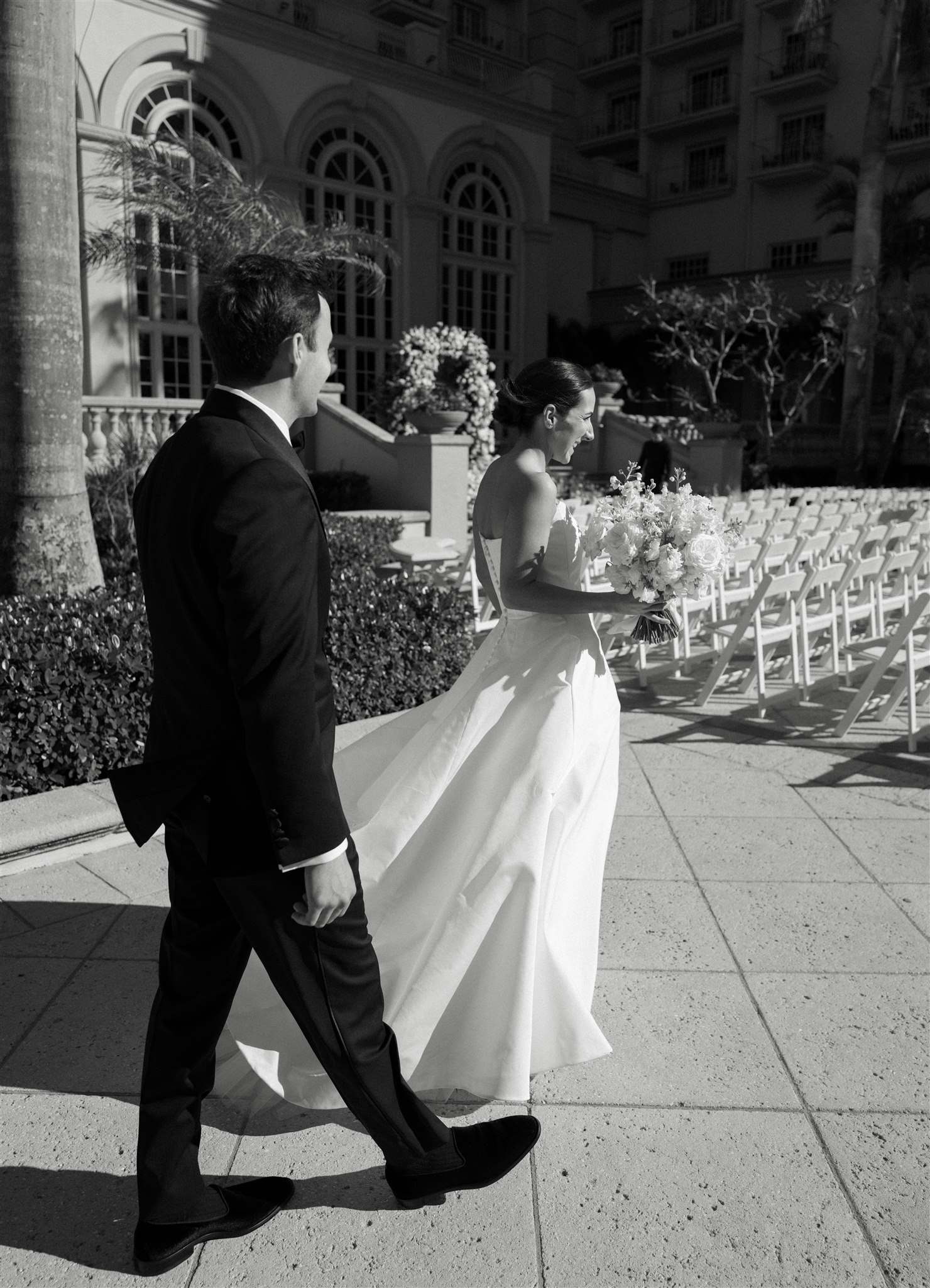 Planning: Shannon Wilson at Table 6 Productions, Shannon Wilson | Videographer: Voila Cinematic | Venue: Ritz Carlton Naples | Florist: Kaleidoscope Florals | DJ/Band: Libido Band – Tropics Entertainment | Hair & Makeup: Duality Artistry | Paper Goods: Lexi Mayde